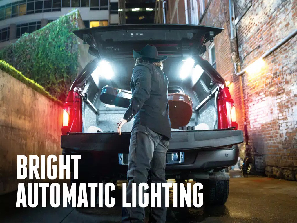 Advanced ActiveTilt™ dome lighting and dual LED rope lights trigger when the truck cap opens for automatic, clear-as-day visibility.