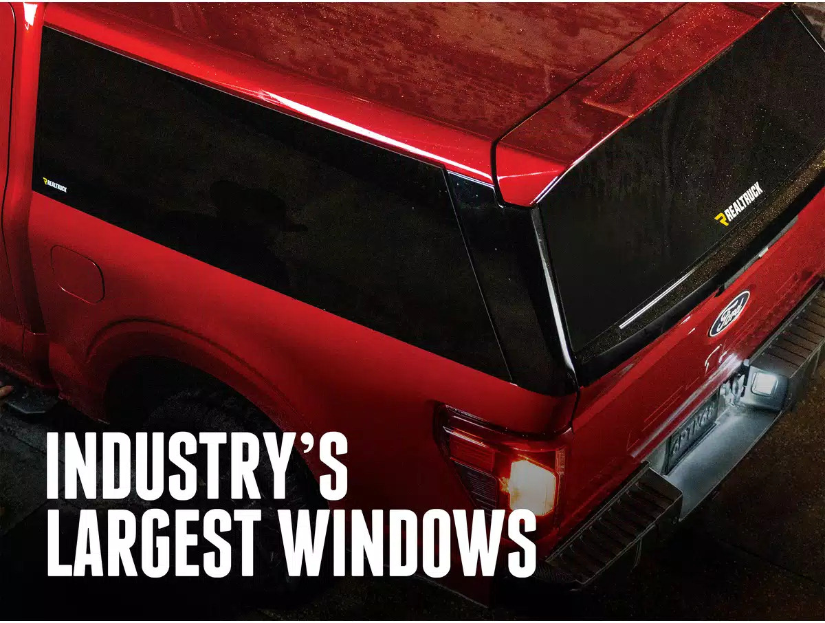 The RealTruck A.R.E. APEX cap sits at the intersection of style and luxury. Its deluxe features-such as massive infinity side windows (the industry's largest), hands-free InvisiLatch™ (patent pending) synchronous rear hatch, carpeted interior, and frameless sliding front window-come standard across all applications. No mark-ups or price gouging-we believe a premium topper should pack premium features at no additional cost.